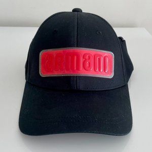 Stylish black cap featuring a bold red logo. Adjustable strap for a perfect fit. Ideal for casual wear.