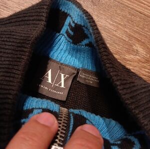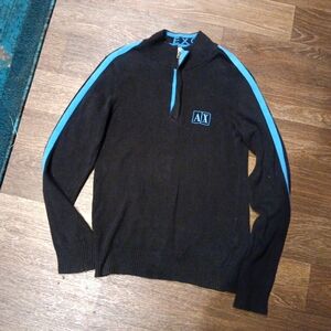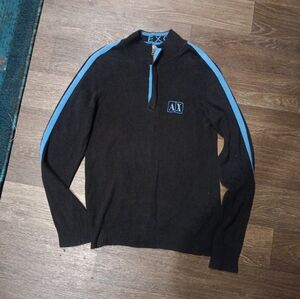 Armani Exchange Black Quarter Zip Knit Pullover Cotton Sweater - Men's Small