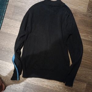 Stay stylish with the men's sweater, featuring a sleek black design with striking blue accents. Perfect for any occasion.