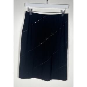 Armani Exchange Black Size 4 Wool Blend Stretch Zip Pencil Skirt Embellished EUC