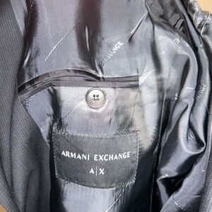 Experience timeless elegance with this Armani Exchange sport coat, featuring a sleek black color and a modern slim fit. The notched lapel adds a touch of classic sophistication, while the slightly textured fabric enhances its refined appeal. Perfect for both formal and casual settings, this blazer is a versatile wardrobe staple.