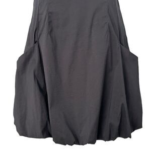 Strapless, bubble hem, fully lined, side zipper , deep side pockets