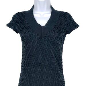 Armani Exchange Black Textured Knit V-Neck Dress Short Sleeve V-Neck Size Small