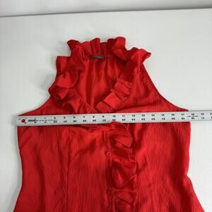 Armani Exchange Blouse Womens Medium Red 100% Silk Ruffle Button Top Y2K Fairy