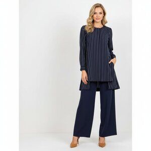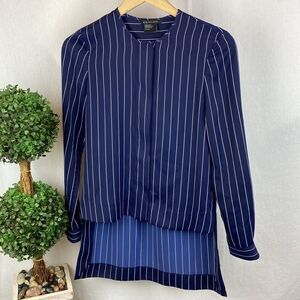 Armani Exchange Blue & White Pinstriped Long Sleeve Collarless Blouse XS