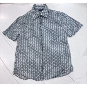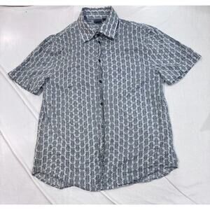 Armani Exchange Button Up Shirt Men Medium Gray Geo Stripes Cotton Spread Collar