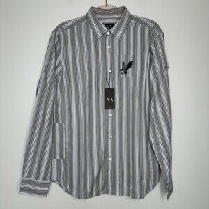Armani Exchange Button up Dress Shirt Striped White Gray Eagle Medium
