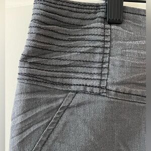 EUC excellent condition & quality by Armani Exchange designer. Mini skirt. Charcoal. Distressed. Cotton, polyester and spandex blend. Side ruching and zipper pockets. Back zipper. Measurements in photos. Women’s size 0. Smoke free home.