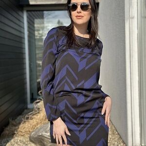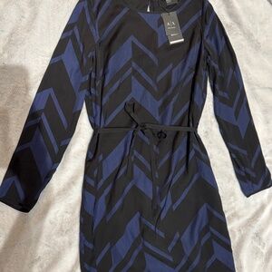 Armani Exchange Chevron Black and Blue Dress, Size XS, New With Tags