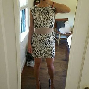 Perfect chiffon dress for spring and summer. I've worn this to a wedding, a professional development mixer, and to the office (worn with a blazer). Dress comes with the gorgeous pale pink belt. Pictutes shows both the belt details and pockets. Dress is made of 100% silk and shell is polyester.