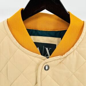 Armani Exchange Cotton Wool Beige Navy Colorblock Quilted Bomber Jacket