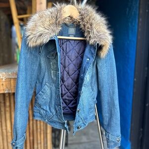 Armani Exchange Denim Jacket with Faux Fur Collar – Size Small