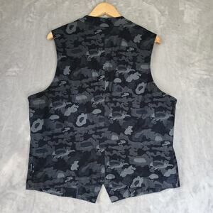 Armani Exchange Denim Vest Mens 2XL Blue Camo Button Front Stretch XXL