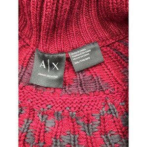 Armani Exchange Full-Zip Knit Sweater XXL Red Nordic Pattern Wool Blend Ribbed C
