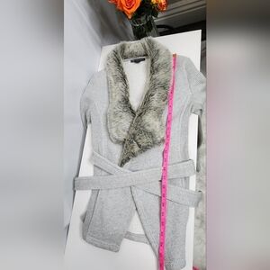Armani Exchange Gray Faux Fur Collar Cardigan