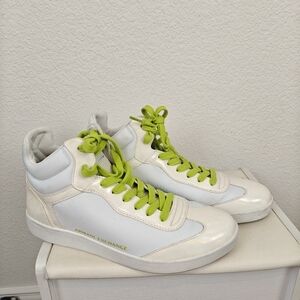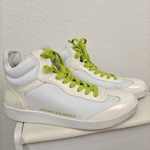 Armani Exchange High Top Lace Sneakers In Op White Acid Lime Size 9 Women's