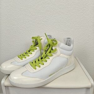Armani Exchange High Top Lace Sneakers In Op White Acid Lime Size 9 Women's