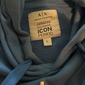 Armani Exchange Icon Logo Hoodie in blue, size Large. This classic hoodie features the prominent AX logo on the front along with "Armani Exchange". Ideal for everyday wear, offering both comfort and casual style. The hoodie is in excellent pre-owned condition with no significant flaws.