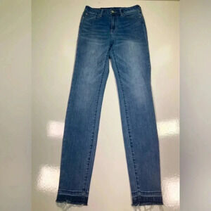 Armani Exchange blue jeans. High rise skinny ankle jeans. Frayed ankle hem. Medium wash. Button and zipper closure. Pockets. Women’s size 26. MSRP $196 keep it casual with a T-shirts and sandals, add a Cami and wedges. Dress it up with the blazer and heels.