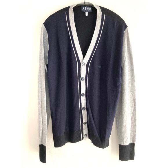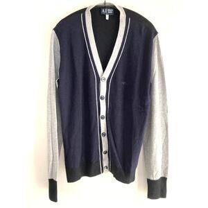 Armani Exchange Junior XL V-neck Navy Gray Color Block Button-up Cardigan