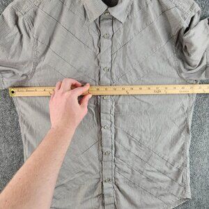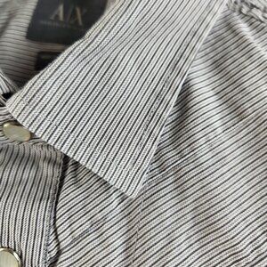 Armani Exchange Large Black White Striped Short Sleeve Pearl Snap Double Collar