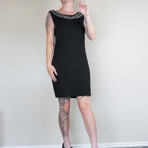 -Sleeveless wide cut off the shoulder neckline with silver chain trim