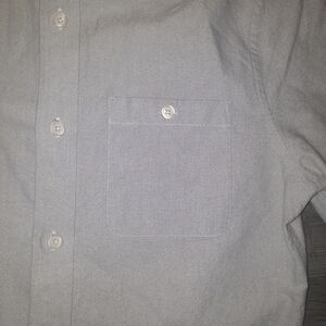 Armani Exchange Long Sleeve Button Up Shirt. Size XS. 100% cotton. Like a light blue/light grey shade. Discoloration along shoulder line shown in the last photo.