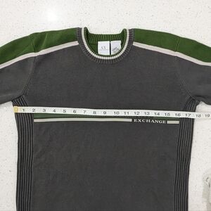 Armani Exchange Men Gray Green Crewneck Sweater Ribbed Sides Casual Size Small