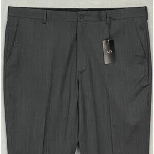 This listing is for a new with tags Armani Exchange Men's 40W Dress Pant in Gray. Slim Fit, Flat Front, Two Front Side Pockets, Two Back Button Pockets, Button/Zip Closure, Stretch Fabric, Belt Loops. 98% Wool, 2% Elastane, Dry Clean Only.