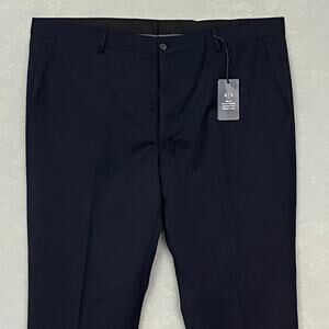 This listing is for a new with tags Armani Exchange Men's 42W Dress Pant in Black. Slim Fit, Flat Front, Two Front Side Pockets, Two Back Button Pockets, Button/Zip Closure, Stretch Fabric, Belt Loops. 98% Wool, 2% Elastane, Dry Clean Only.