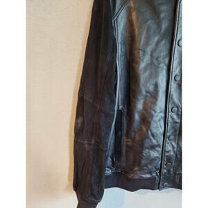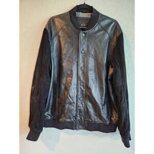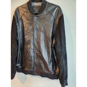 Armani Exchange Men’s Black Leather Bomber Jacket XXL Suede Sleeves Snap Button
