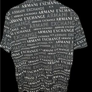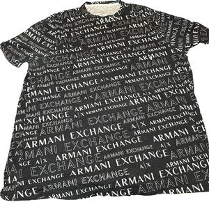 Armani Exchange Men's Black and White T-Shirt A/X Logo XL V-Neck Collar Std Fit