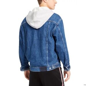 Armani Exchange Men's Denim Jacket with Removable Gray Fleece Hood Size M