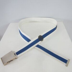 Armani Exchange Mens L White Blue Black Canvas Belt Adjustable Buckle 35 - 40
