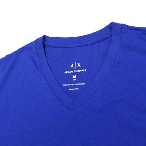 Armani Exchange Men's Long Sleeve T-Shirt V-Neck Slim Fit Pima Cotton Blue S