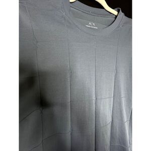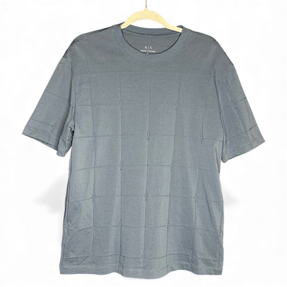urban, streetwear, Giorgio Armani, street-inspired, geometric pattern, crew neck, armani exchange, ribbed cotton, slate blue, slate gray, relaxed, casual, soft, comfy, comfortable, luxury, trendy, normcore, stylish, timeless