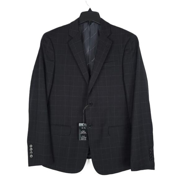 Armani Exchange Men's Slim-Fit Stretch Wool Suit Jacket Black Windowpane 38R NWT