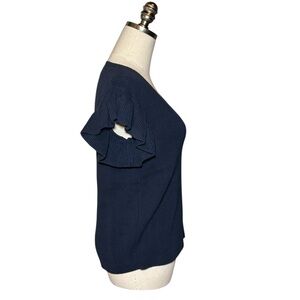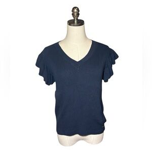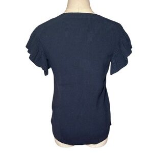 Armani Exchange Navy Blue Ruffled Sleeve Sweater Short Sleeve V-Neck Ribbed