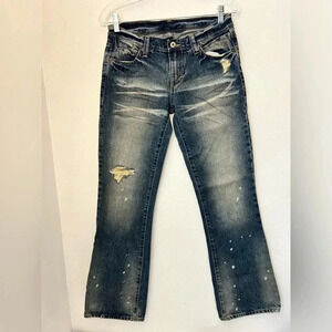 Armani Exchange Paint Splatter Distressed Low Rise 90s Straight Leg 4 Short Jean