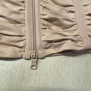 Armani Exchange Ruched zip up turtleneck top double zipper is Sexy as hell. Beige color. Beautiful lining. Measurements are taken laying flat and are in pictures.