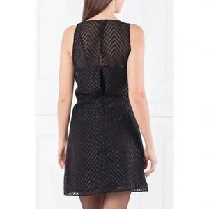 Armani Exchange SHEER GLITTER FIT FLARE BLACK Mini Dress Women Size 4 NWT