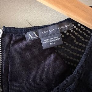 Armani Exchange Short Sleeve Black Dress with Mesh Lace Overlay