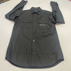 Armani Exchange Slim Fit Waxed Cotton Black Snap Button Long Sleeve Shirt Size Small
