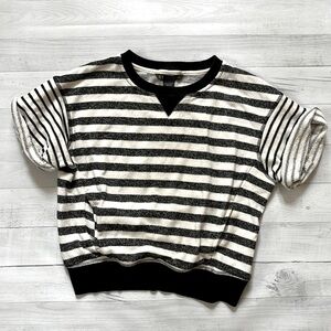 Adorable, comfy AX black and white striped short sleeve sweatshirt with front pockets size XS