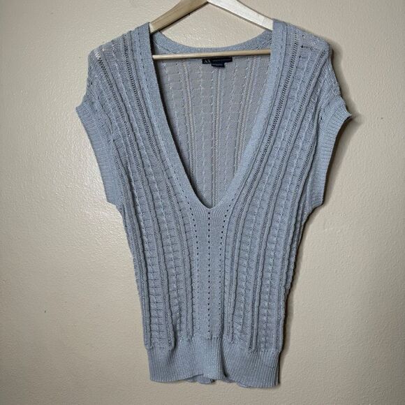 Armani Exchange Sweater Vest Women's Medium Gray V-neck Knitted Stretchy