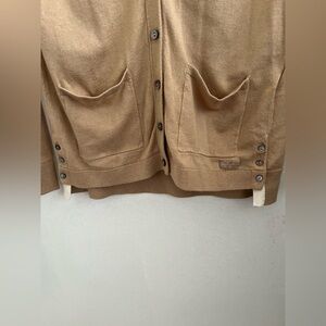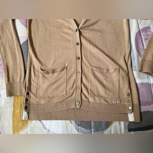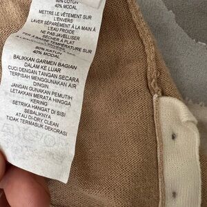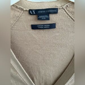 These Armani Exchange chinos in a versatile tan color offer a comfortable fit with their elastic waistband and lightweight, stretchy fabric. The tapered design ensures a modern look, making them perfect for casual outings.