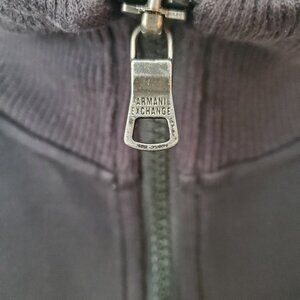 Armani Exchange Mens Large Faded Spell Out Color Block Full Zip Sweater.