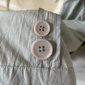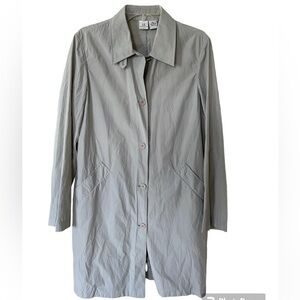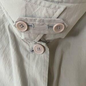 Beautiful sage color light nylon jacket size M , signature buttons, two pockets, simple, great work piece