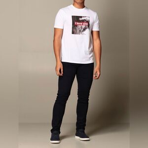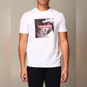 Armani Exchange T-shirt, I Love You Print, UNISEX, White, Size M
