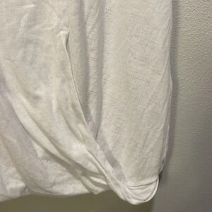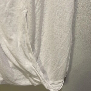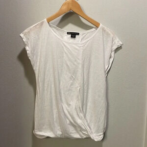 Armani Exchange Woman’s white shirt sleeve gathered top. This top has a little gathering at the bottom of the shirt. The shirt is super cute and in good condition.